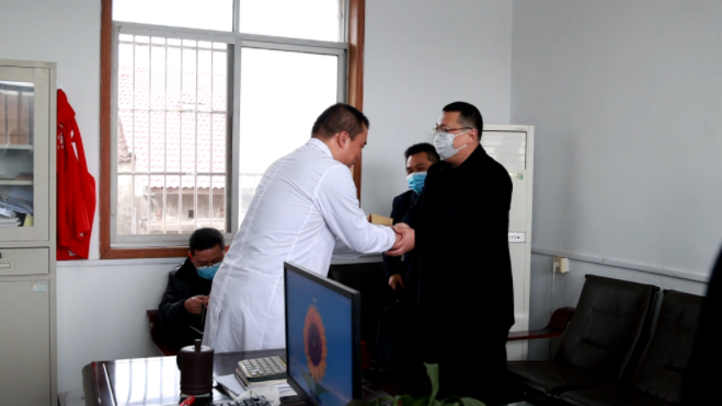 在东山镇塔市驿卫生院,陈胜向医护人员送上新春祝福,感谢他们在岗位上的辛勤付出,充分肯定他们为华容医疗健康事业所作的贡献,勉励他们继续在各自岗位发光发热,为华容县医疗健康事业高质量发展贡献力量。