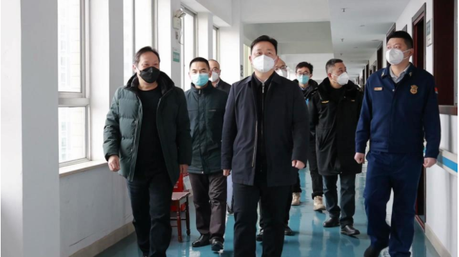 在县社会福利院,易斌详细询问食堂卫生、电梯及锅炉房的安全问题,对现场消防安全、施工安全、设备安全落实到位的举措表示肯定。