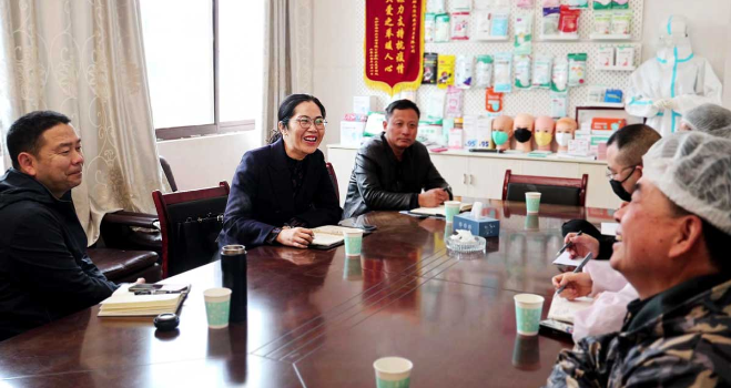 在湖南康沃医疗用品有限公司,涂娟走进生产车间,向企业负责人详细询问企业生产运营情况,现场协商解决存在的问题和困难。叮嘱随行部门负责人要研究对策良方,尽力为企业排忧解难,帮助解决实际问题,助力企业做大做强。
