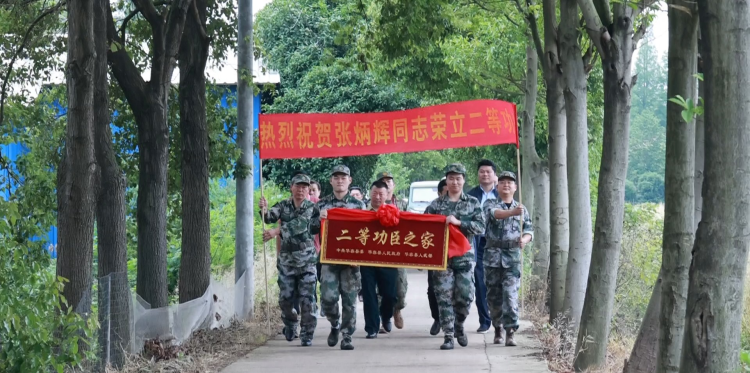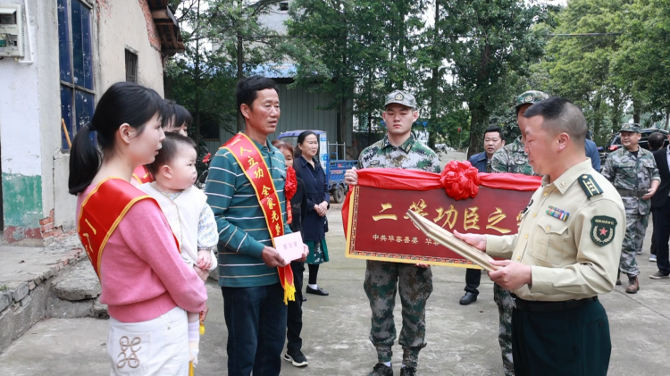 5月6日,伴随着阵阵锣鼓声,现役军人张炳辉的家人迎来了“二等功臣之家”牌匾。县人武部政委刘明亮一行为张炳辉的家属送上喜报和慰问金,向家属表示感谢和敬意。