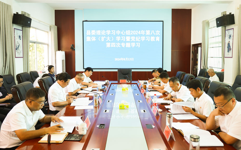 华容融媒体中心讯(记者 孙舒 董华杰)8月13日,县委理论学习中心组开展2024年第八次集体(扩大)学习暨党纪学习教育第四次专题学习,深入学习贯彻党的二十届三中全会精神、习近平法治思想、《中共湖南省委党纪学习教育工作专班关于用好违纪行为典型案例的通知》及防汛工作纪律要求。县委书记陶伟军主持会议,全体在家县级领导参加学习。