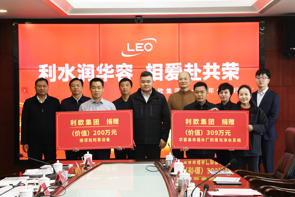 浙江利欧集团股份有限公司此次共捐赠总价值超500万的排涝抢险水泵及配套设备和幸福水厂建设所需要的净水系统及其它设施、设备。
