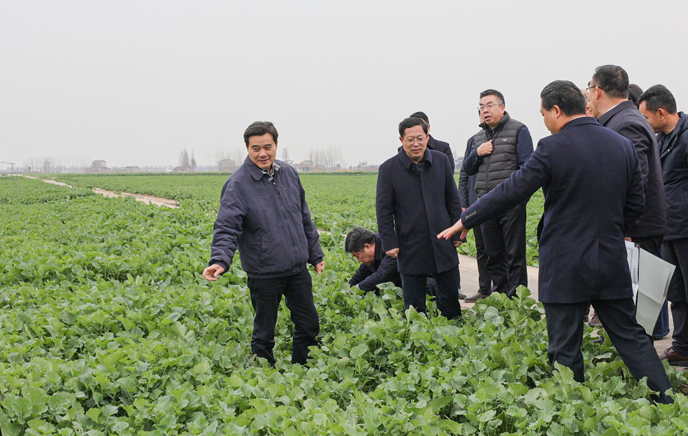 2月6日,正月初九,距离省农科院新年上班还有4天时间,中国工程院院士、省农科院党委书记柏连阳带着农科院的20多位专家到团洲垸开“新春第一会”,看油菜长势,规划今年农业生产。岳阳市人民政府副市长陈阁辉 ,华容县委书记陶伟军,县委副书记张岳平,县政府副县长陈飞陪同。