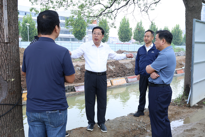 陶伟军一行先后来到田家湖北路与迎宾南路的田家湖生态新城污水处理设施建设项目现场,实地察看清淤生态护坡及污水管网建设进展情况。在金荣科创园,陶伟军与科技企业孵化器项目负责人深入交谈,详细了解项目建设与运营情况。