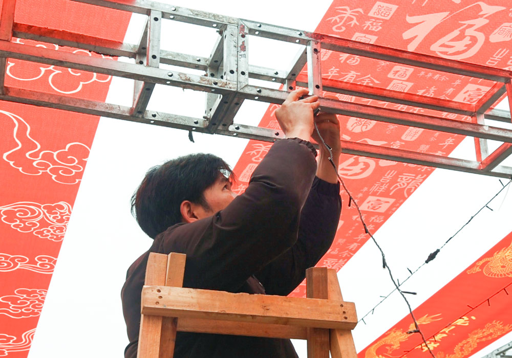 华容融媒体中心讯(记者 沈聪 实习记者 蔡文鑫 吴思进)岁末迎春,灯火暖人。2月4日,华容禹山长工旅游度假区内红灯高挂、气氛热烈,工作人员正紧张有序推进各项准备工作,8组大型主题花灯已初具规模。一场融合传统灯艺与现代互动体验的花灯盛会进入倒计时,将于2月7日正式亮灯迎客。