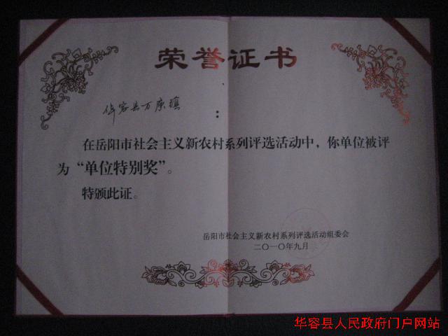万庾镇喜获岳阳市社会主义新农村建设“单位特别奖”荣誉