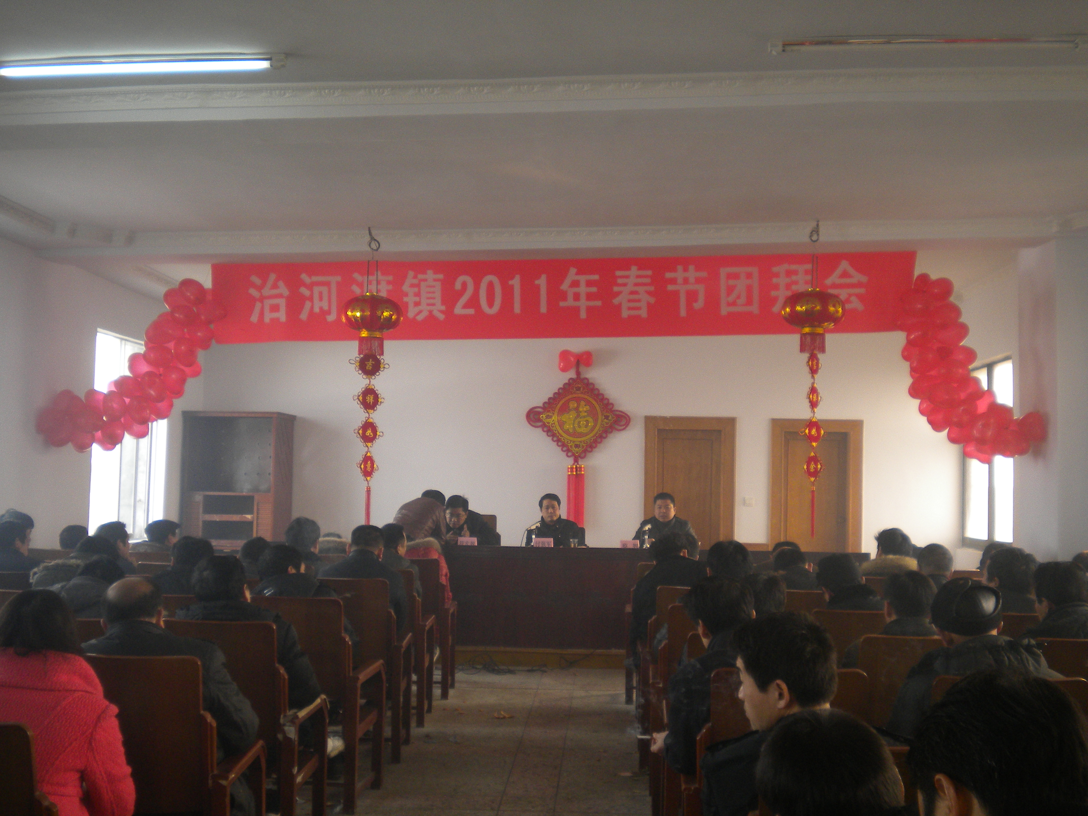 2011年1月23日,我镇召开了以“辞旧岁迎新春”为主题的春节团拜会。全体机关工作人员、各部门负责人、村场支部书记共80余人出席。