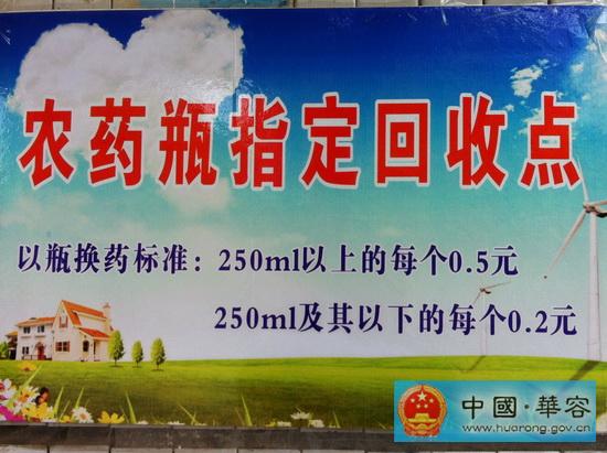 针对上述情况,乡政府作出250Ml以上的农药瓶每个0.5元、250ML及以下的农药瓶每个0.2元的回收决定,并把宣传资料张贴到全乡15个村场。