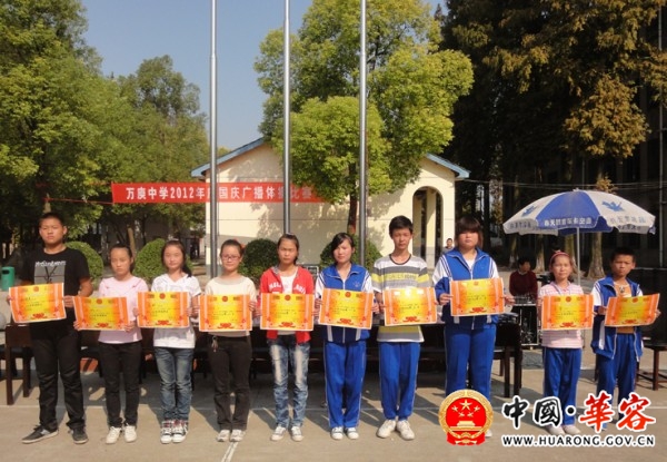 下午2:00,学校彭校长宣布比赛开始。比赛场上,学生统一着装、精神饱满、动作到位、姿势优美、节奏明快、整齐划一,同学们个个表现得精神饱满,充满朝气和活力。那整齐的步伐、洪亮的口号、标准的动作、飒爽的英姿充分展示了万庾中学师生积极的爱国主义情操,团结协作、积极进取、乐观向上的精神风貌,各班都赛出了优良的风格,赛出了最好的水平。 比赛结束,分别评出一、二、三等奖,并为获奖班级颁发了奖品和奖状。