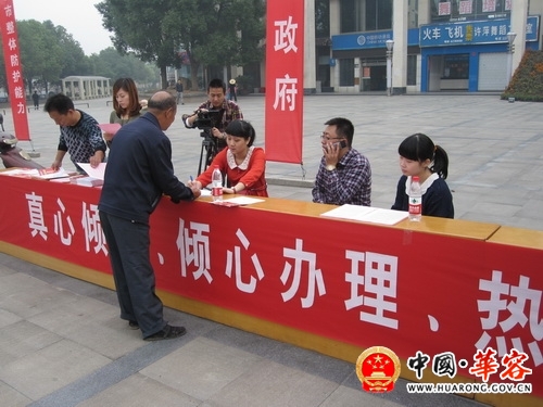 10月11日上午8点,城关镇组织工作人员来到华容道广场,宣传“12345”政府服务热线。