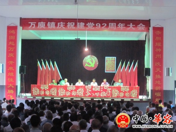 6月26日上午,万庾镇庆祝建党92周年大会在镇影剧院隆重召开。全体机关干部、村场和部门负责人、党员群众代表及老干部代表800多人参加会议,镇党委副书记、镇长王全军主持会议。