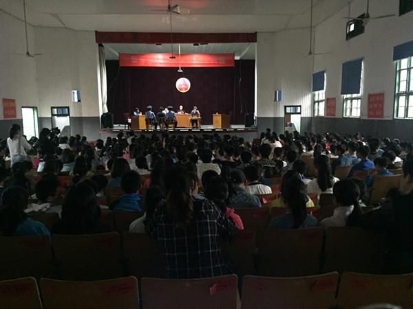 19日下午,华容县人民法院巡回法庭在万庾镇开庭,来自万庾中学的500多名学生旁听了庭审。法庭现场审理了潘建荣容留他人吸毒案,通过对案件的审理,起到了“以案说法”的目的,营造了知法、懂法、用法、守法的氛围。庭审后,学生们还集中观看了青少年禁毒教育片《致青春》。此次活动是该镇“6.26”禁毒宣传日系列活动之一,通过宣传教育,获得了良好的社会效果和法律效果,同学们纷纷表示,一定会养成良好的生活习惯,自觉对毒品说不,影响和带动身边的人远离毒品。