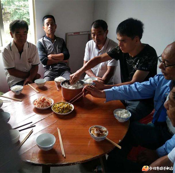 12点左右,三十多名执行任务回来的队员们放下工具,坐上餐桌用餐。
