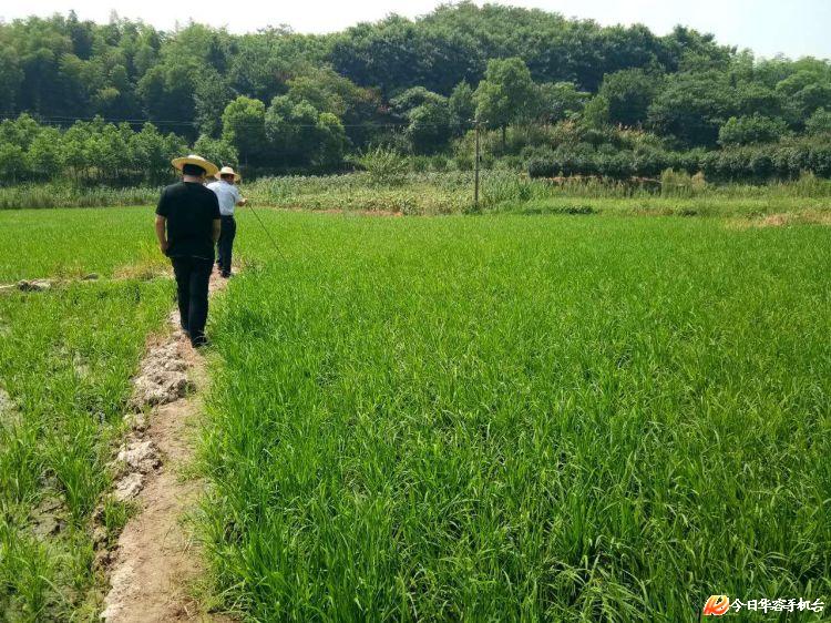 8月3日下午,在华容县章华镇十里铺村中、晚稻水田现场,农技推广中心的工作人员正对水稻病虫害进行统防统治。