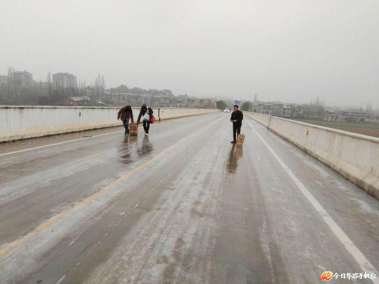 组织镇工班人员清扫主干道路和大桥积雪,撒盐融化坚冰。