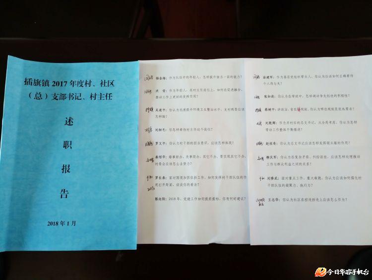 1月10日,华容县插旗镇举行2017年村、社区(总)支部书记、村主任述职测评大会,不同以往的是,除8名(总)支书记上台述职外,8名村主任也首次上台述职。