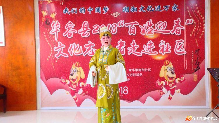 2月8日,华容县“我的中国梦 湖湘文化进万家”文艺汇演暨2018百姓迎春文化活动走进章华镇南街社区,为社区居民送上文化“大餐”,送来新春的祝福。