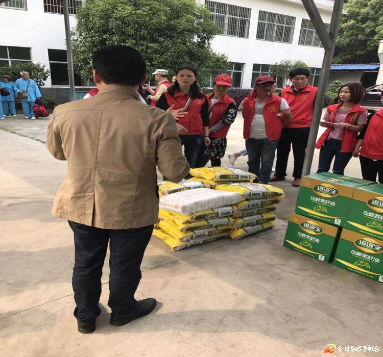 在胜峰敬老院,志愿者们帮助孤寡老人打扫环境卫生,与孤寡老人促膝谈心,为他们表演文艺节目,并为老人送去米、面、油及生活物资,表达对孤寡老人的关爱之情。