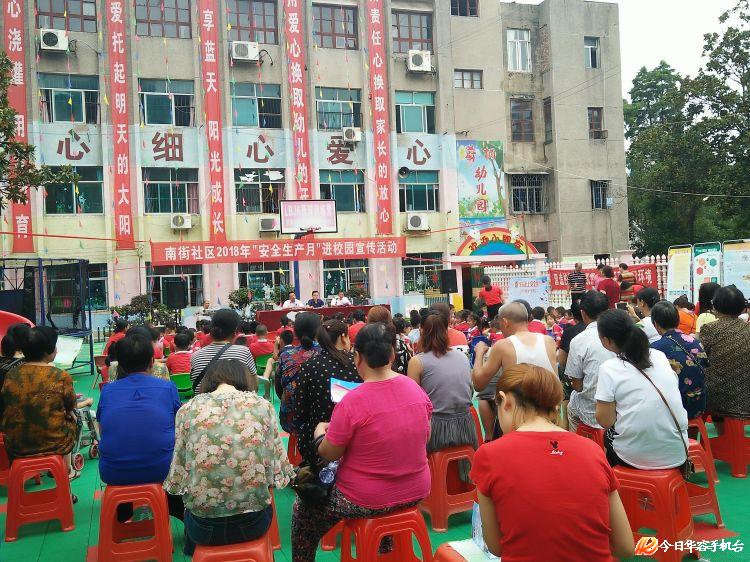 6月20日,华容县章华镇南街社区和蔚桐幼儿园共同举办“第十七个安全生产月宣传咨询进校园活动”。