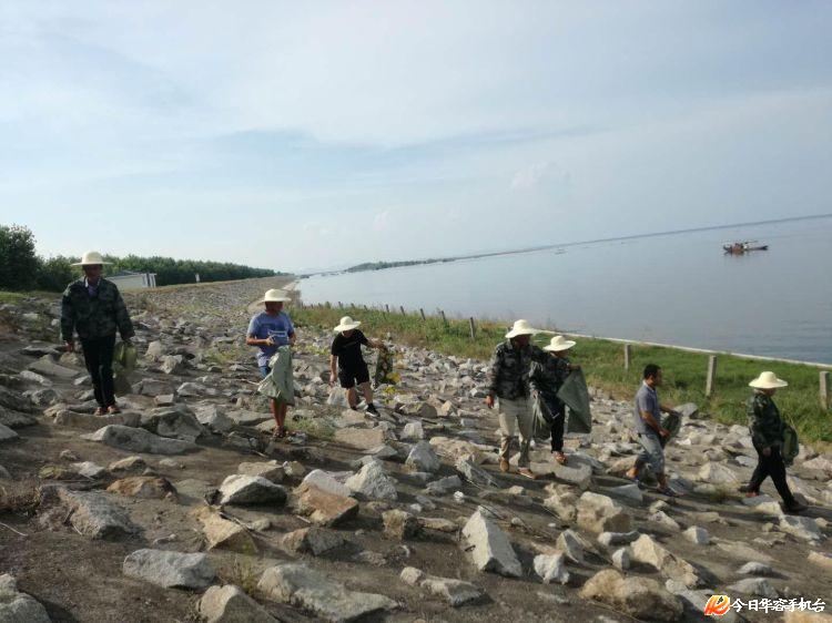 当天下午3点,热浪袭人,乡河长制办负责人带领机关全体退伍军人对洞庭湖沿线的垃圾和水面漂浮物进行清理,并对沿线水域是否存在非法网鱼等情况进行检查。