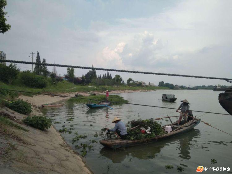 近日,华容县章华镇陵园街社区组织船只和劳力,对华容河陵园街社区辖区段进行河内清障。