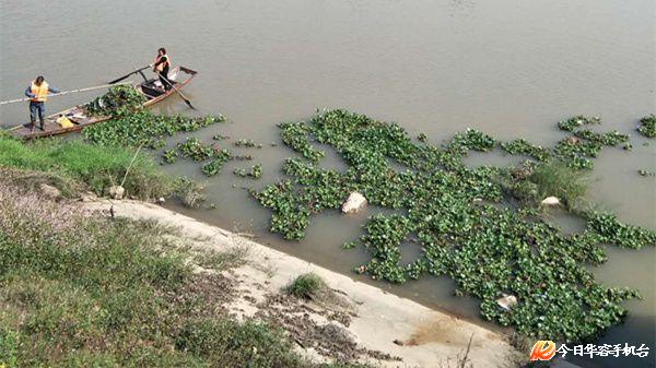 在国庆节假期间,华容河沿线机埠排水时带入水葫芦。由于温度适宜,水葫芦很快在华容河北街防护段繁衍开来。社区巡河队及时发现情况后,迅速向上级汇报,并第一时间聘请了两名专业渔民清理水葫芦。经过两天的努力,渔民通过自制的打捞水葫芦专用工具,打捞、转运水葫芦,清理水面垃圾,让河面干净,让河水清澈。