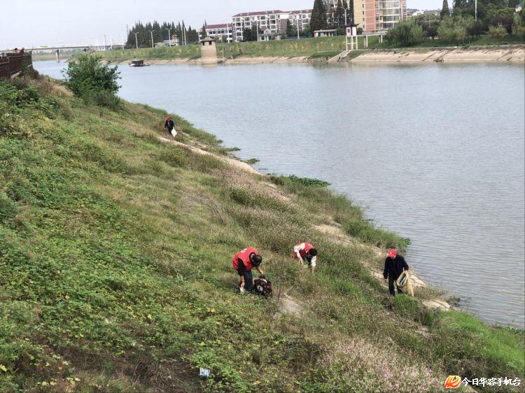 章华镇北街社区及时清理华容河北街段的水葫芦