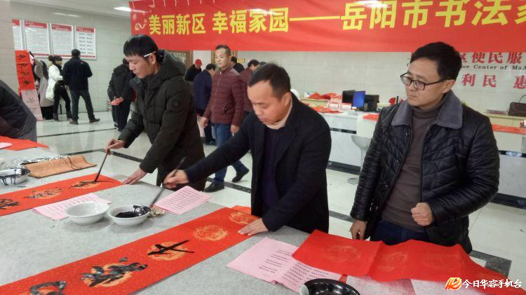 1月23日,由华容县田家湖生态新区扶贫办、妇联、工会联合组织,市县书法家协会的书法家们受邀参加华容县田家湖生态新区举举办的“美丽新区、幸福家园”送文化进社区活动,为新区群众送上春联600余幅。
