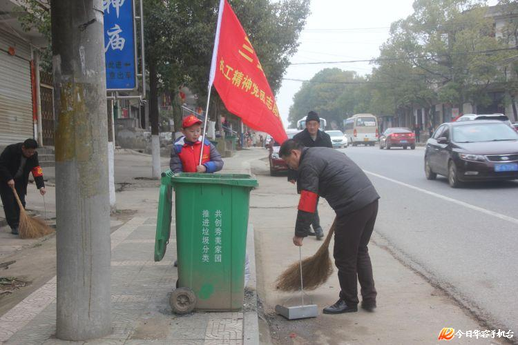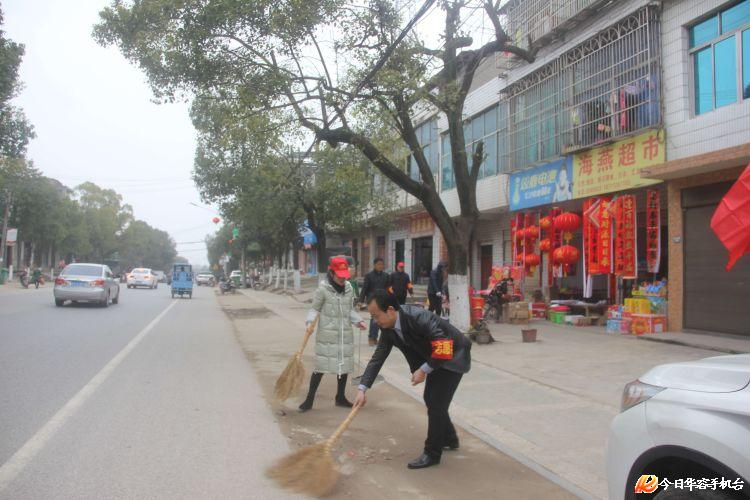 大家头戴红帽,臂挂袖章,带着保洁工具,在集镇的大街小巷进行清扫除杂;同时劝导居民们保护环境卫生,文明欢度新春。