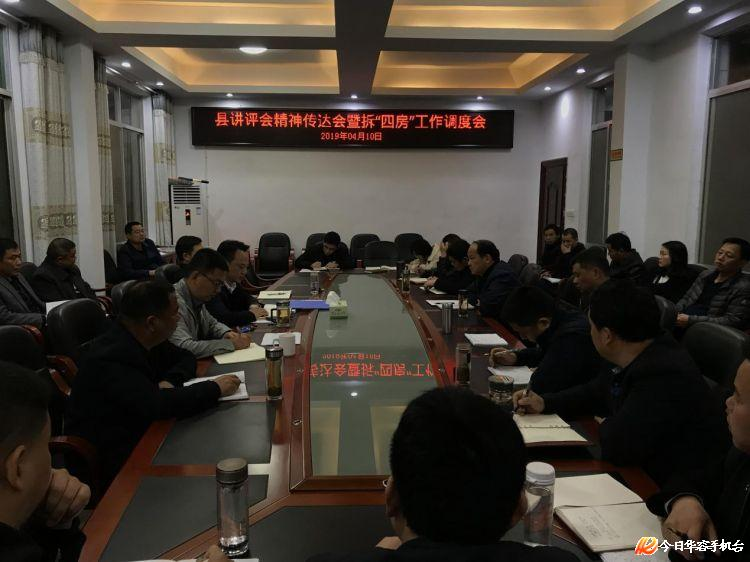 4月10日,华容县人居环境整治工作讲评会召开。当晚,新河乡组织召开县讲评会精神传达会暨拆“四房”工作调度会。乡全体党政负责人、人居环境指挥所办公室成员、各村(社区)第一书记出席会议。