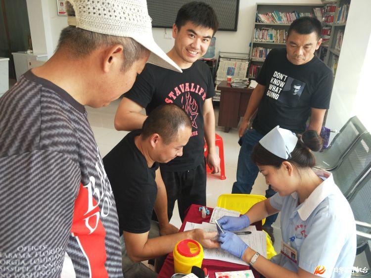 在新河口社区居民服务中心活动现场,志愿者们热情洋溢,有序参与;医务人员引导安排献血者完成填表、验血、采血程序,仔细叮嘱志愿者抽血后注意事项。