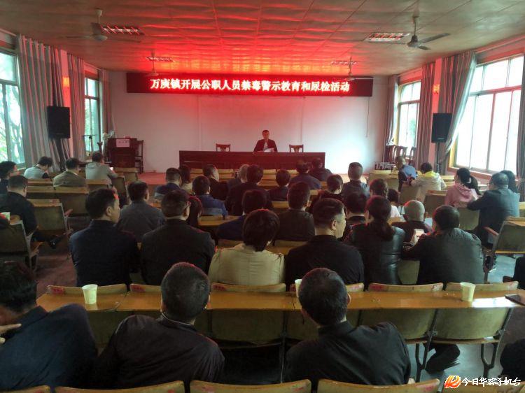 10月11日,万庾镇组织全体机关干部、站所工作人员和支村“两委”班子成员集中进行禁毒警示教育和突击尿检。
