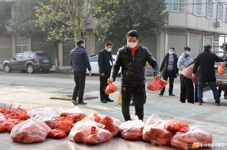 2月4日早上9时,在华容县东山镇三郎堰社区、塔市驿社区、砖桥社区,三台满载着蔬菜、猪肉和大米的运输车停靠在路边,来自该镇的乡镇机关干部、村干部、村医正在分别打包装袋。当天,该镇657户居家隔离的湖北返乡人员,均会收到1篮蔬菜、3斤猪肉和5斤大米的免费物资供应。