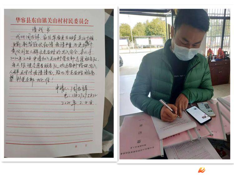 关山村周友祥写下请战书,申请加入志愿者的队伍,希望能为家乡的疫情防控工作贡献自己的一份力量。