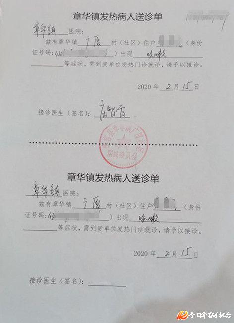 为了更好地把网格化摸排管控中出现的异常情况处置到位,避免老百姓因为顾虑而瞒报、迟报问题,章华镇出台了异常情况免费接诊、免费专车接送、免费检测核酸的政策。老百姓有异常情况时,通过微信群报告,一分钟内村(社区)干部就能知晓,半小时内就会安排医生上门初步检测,对于确需送医院诊断的,由村(社区)开具《章华镇发热病人送诊单》,一小时内就会有专车上门接送。