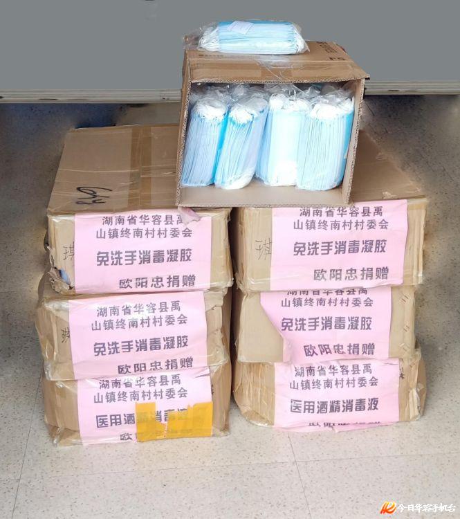 3月5日,华容县禹山镇终南村村部收到了一份特殊的快递。原来是乡友欧阳忠捐赠的口罩、免洗凝胶和消毒液等物资,整整7箱,价值近3.5万元。