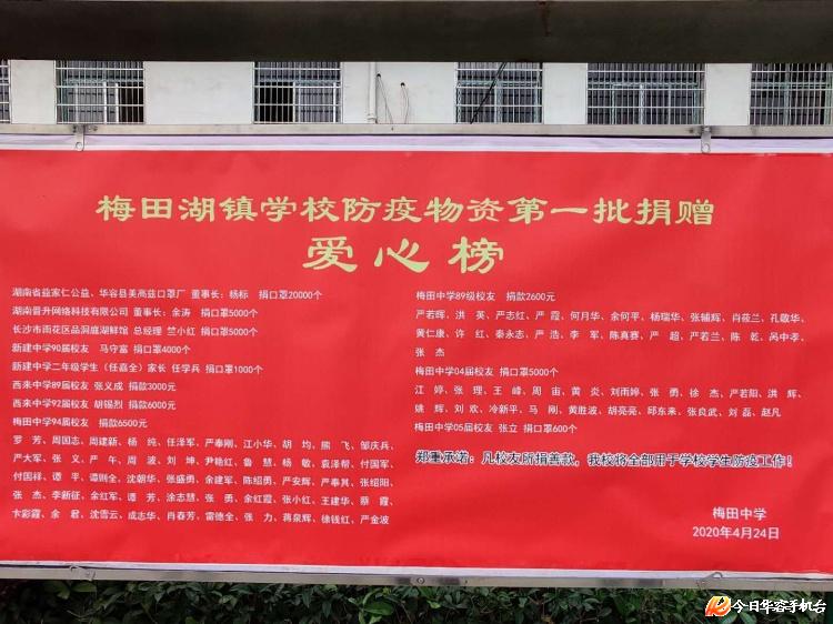 师恩难忘,母校情深。4月24日上午,来自梅田中学的部分乡友、校友来到母校---梅田中学,助力梅田湖镇广大师生疫情防护工作,捐赠口罩共43000多个,捐款18000余元。
