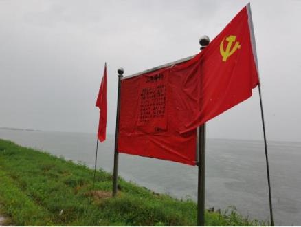 7月7日上午,华容县团洲乡五营团华连管理段,一群身穿红马甲的党员面对党旗,举起右拳,重温入党誓词庄严宣誓。在他们身后,是水位正急速上涨的浩瀚洞庭。雨中,他们胸前的党徽却熠熠生辉。