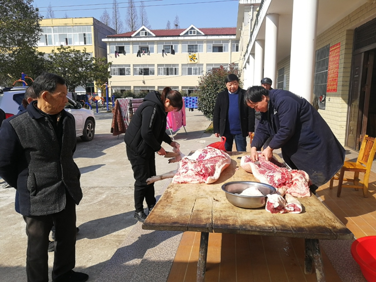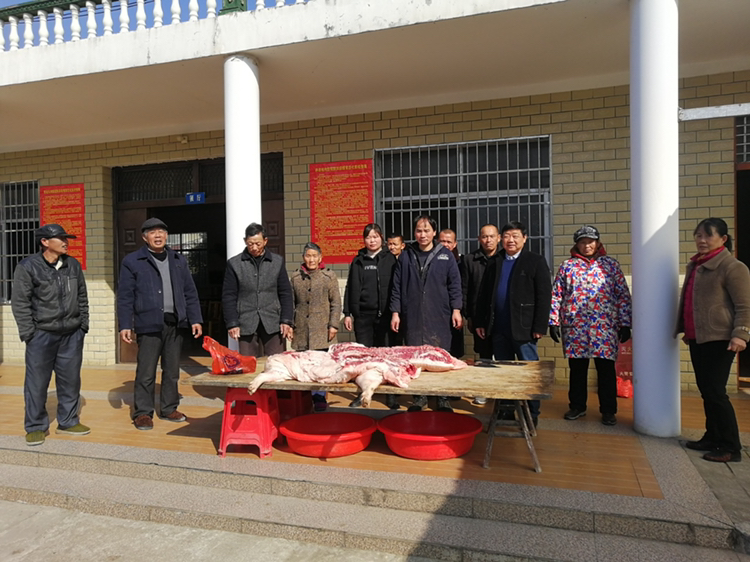 北景港镇:元旦节里爱心猪肉送到敬老院