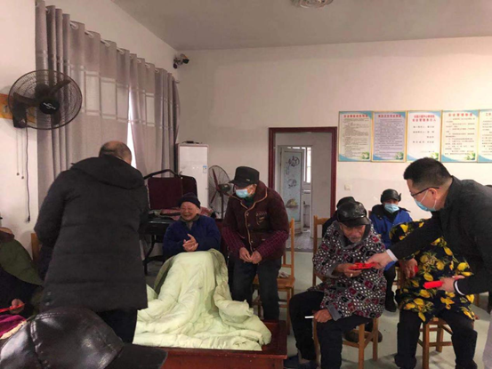 在敬老院内,陈飞书记和老人们拉起了家常,亲切的询问老人们的生活和身体情况,代表党委政府向老人们致以春节问候,并送上慰问金和其他物资。