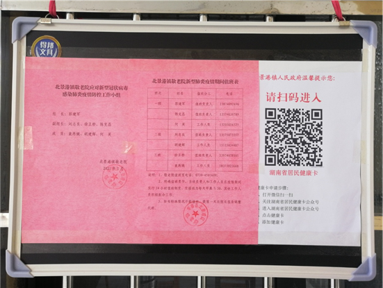 二是强化值班值守。根据县、镇两级要求,制定《北景港镇敬老院疫情防控实施方案》和《北景港镇敬老院疫情防控应急预案》。强化组织领导、明确值班责任,由敬老院负责人带队,三班轮值落实24小时带班值班制度,做到轮值无缝隙,联络畅通。