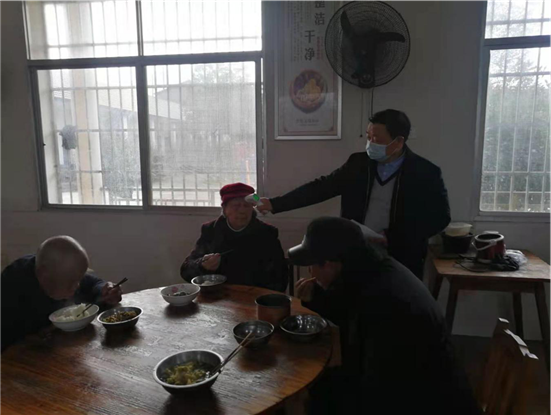 三是落实防疫措施。敬老院严格落实相关防疫措施,对日常生活物资采取统一配送方式,配备了充足的口罩、消毒液、洗手液等,同时定期对老人活动场所的桌椅、地面进行擦拭、消毒,确保院内卫生清洁,工作人员每天早晚两次对院内72名老人及7名工作人员进行体温测量,密切关注老人身体情况。