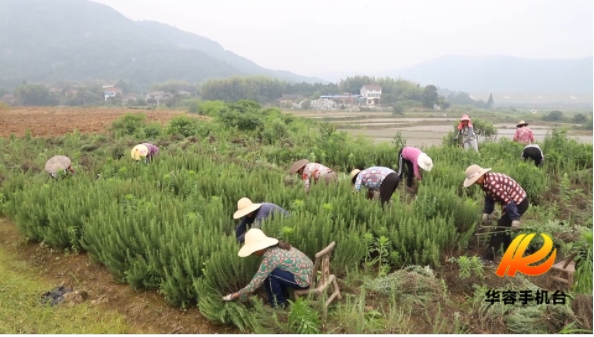 华容融媒体中心讯(记者 张帆 杨雅淇)“百花自在盛开时,花意自然扑鼻香”。在华容县东山镇仙鹅寺村180多亩迷迭香基地,青绿的迷迭香草布满田间地头,散发出清新淡雅的草本芳香。一大早,数十名村民戴着草帽、拿着剪刀正在趁天晴收割头茬成熟的迷迭香。