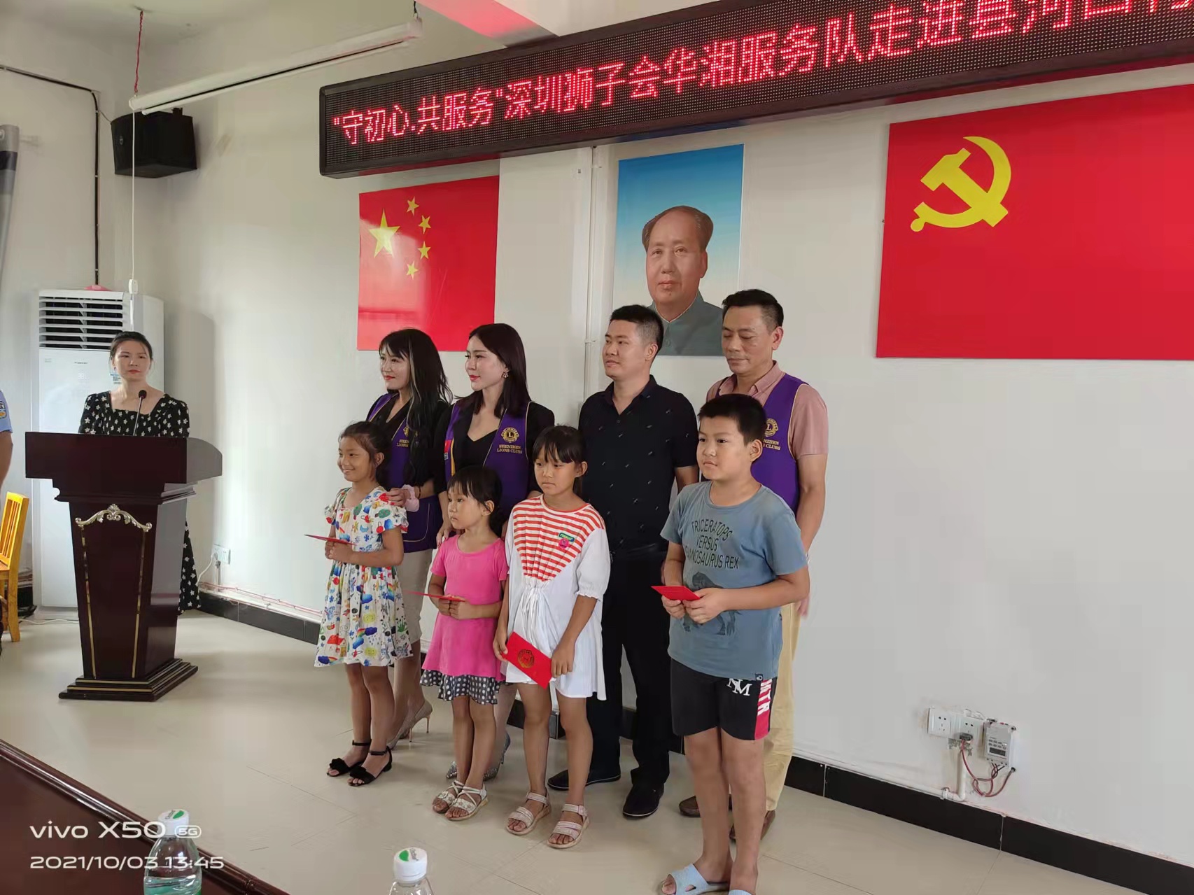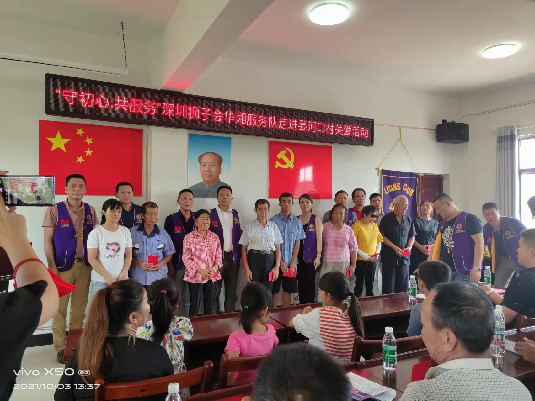 深圳狮子会华湘服务队现场向县河口村40名脱贫户、残疾户、贫困学子分别送上慰问金、大米、食用油等,共捐赠现金8万元和价值2万元物资。