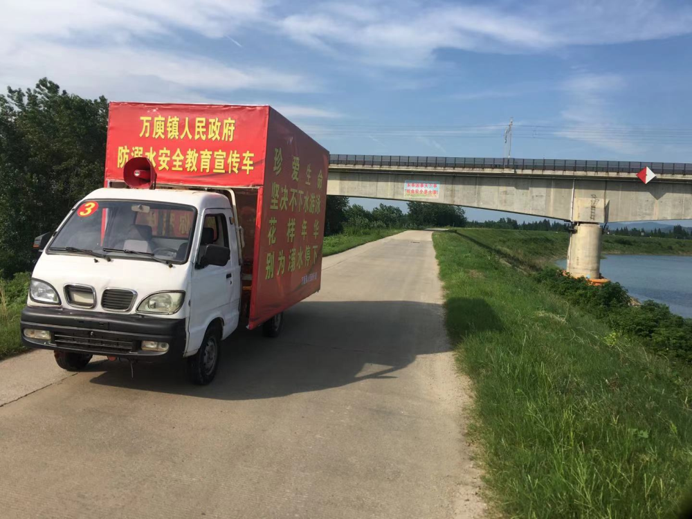 组织干部职工以及志愿者上门入户发放防溺水宣传单,开展防溺水宣传,在村(社区)显要位置以及面向学生家长,张贴和发放《万庾镇珍爱生命预防溺水倡议书》,并通过防溺水巡逻宣传车及“村村响”广播反复播放防溺水宣传知识,切实提升群众安全意识。