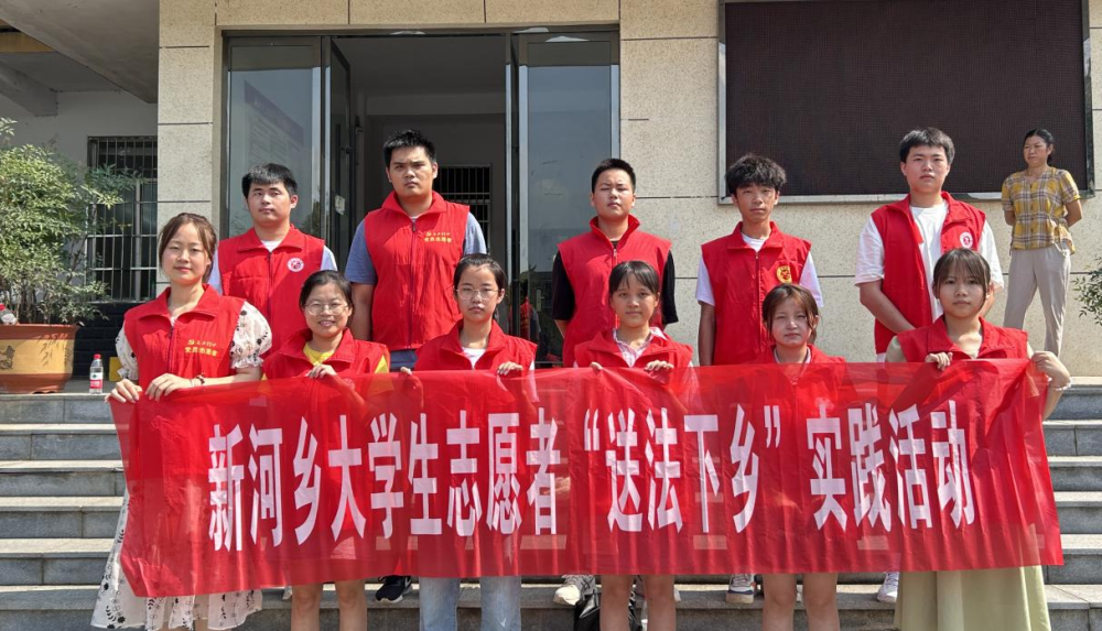 新河乡平安办结合乡团委“智汇潇湘.鸿雁之约”暑期大学生“返家乡”社会实践活动,招募10名新河籍在校大学生开展“送法下乡”集中宣传活动。大学生志愿者和该乡平安办、司法所、乡镇法律顾问等工作人员一道设置咨询台,向群众宣传法律知识,为群众提供法律咨询服务,为群众送上包括《防范和处置非法集资条例》《中华人民共和国反电信网络诈骗法》等法律法规等在内的普法宣传"礼包"。