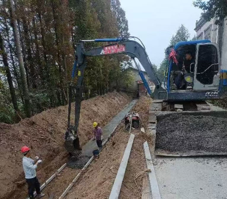 水渠是灌溉的重要渠道,是农业生产的重要保障。在鲇鱼须镇麦地村的排灌渠道建设项目施工现场,机械轰鸣,工人们正在有序作业,挖掘机、水泥罐车等各种工程车来回穿梭,项目施工如火如荼。