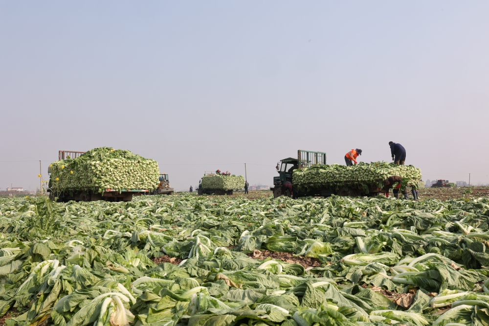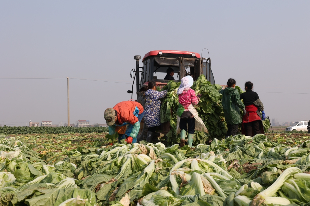 杨振玉家的芥菜收割工作从12月18日开始,近百名工人同时劳作,抢抓晴好天气,大约4天可以全部收割完成。杨振玉介绍,今年冬天较为温暖的气候为芥菜生长提供了有利条件,与此同时,农业部门频繁下乡开展技术指导工作,有效防治病虫灾害,共同促成了芥菜的茁壮成长。
