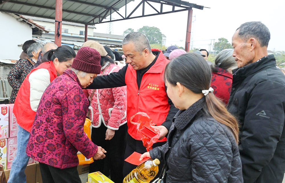 活动现场,企业代表与社区工作人员有序协作,将1800份优质大米、食用油、牛奶等生活物资及慰问金逐一发放到村民手中,在冬日里为当地群众送上一份温暖与关怀。