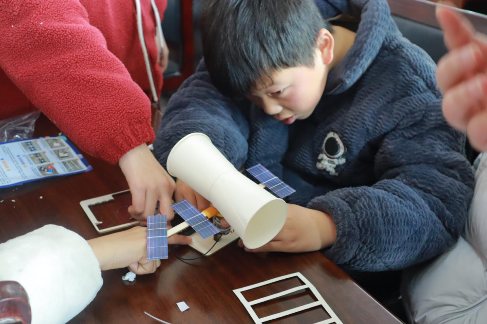 课堂上,志愿者通过故事讲解、互动问答与手工实践等形式,引导孩子们感受国家发展脉动,理解时代前进方向。在航天模型组装环节,学生们分组协作,动手拼装天宫空间站、神舟飞船等模型,既锻炼了动手能力和团队协作意识,也激发了探索科学的热情。